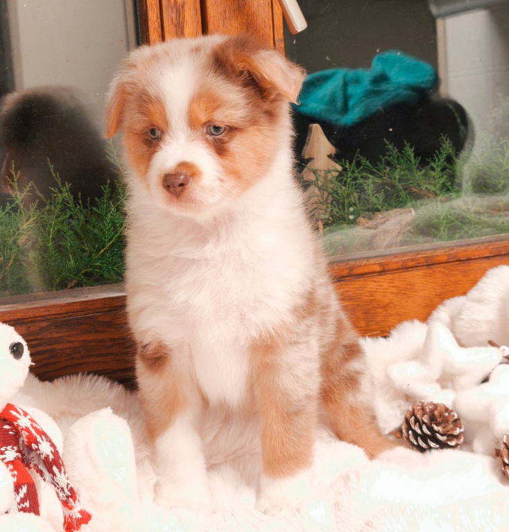 Une très belle rouge avec un beau marquage, coté caractère pour le moment hésite encore un peu à découvrir le monde, reste un peu en retrait, elle est assez indépendante, je pense qu'elle serait très à l'aise avec un autre compagnons à quatre pattes par exemple...